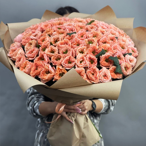 Букет "Персик" из 101 махровой розы Риджентс парк (60 см)