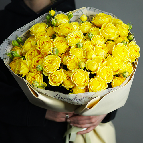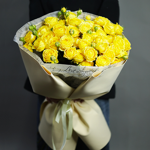 Букет "Лимонный пломбир" из 13 кустовых роз